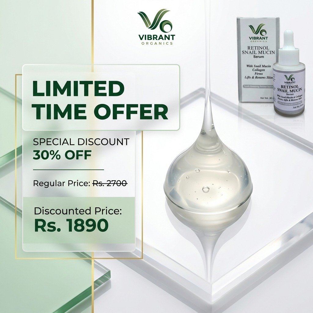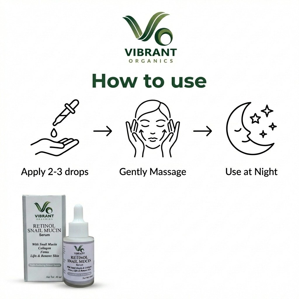 Rejuvenate and repair your skin with Vibrant Organics RETINOL SNAIL MUCIN Serum. Enriched with Collagen and D-Panthenol, this powerful anti-aging formula deeply penetrates to repair daily damage, boost elasticity, and deliver a healthy, youthful glow while you sleep.